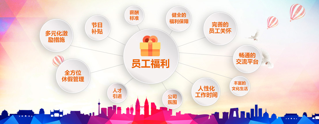 ?愛心基金、人才公寓、安居住房補貼、福利宿舍、結(jié)婚/生子禮金、結(jié)婚紀念日賀禮、高溫/通訊/交通/工作餐補助、慰問金、生日PATTY、體檢、心理健康關(guān)懷、員工家庭(父母、配偶、子女)關(guān)懷等