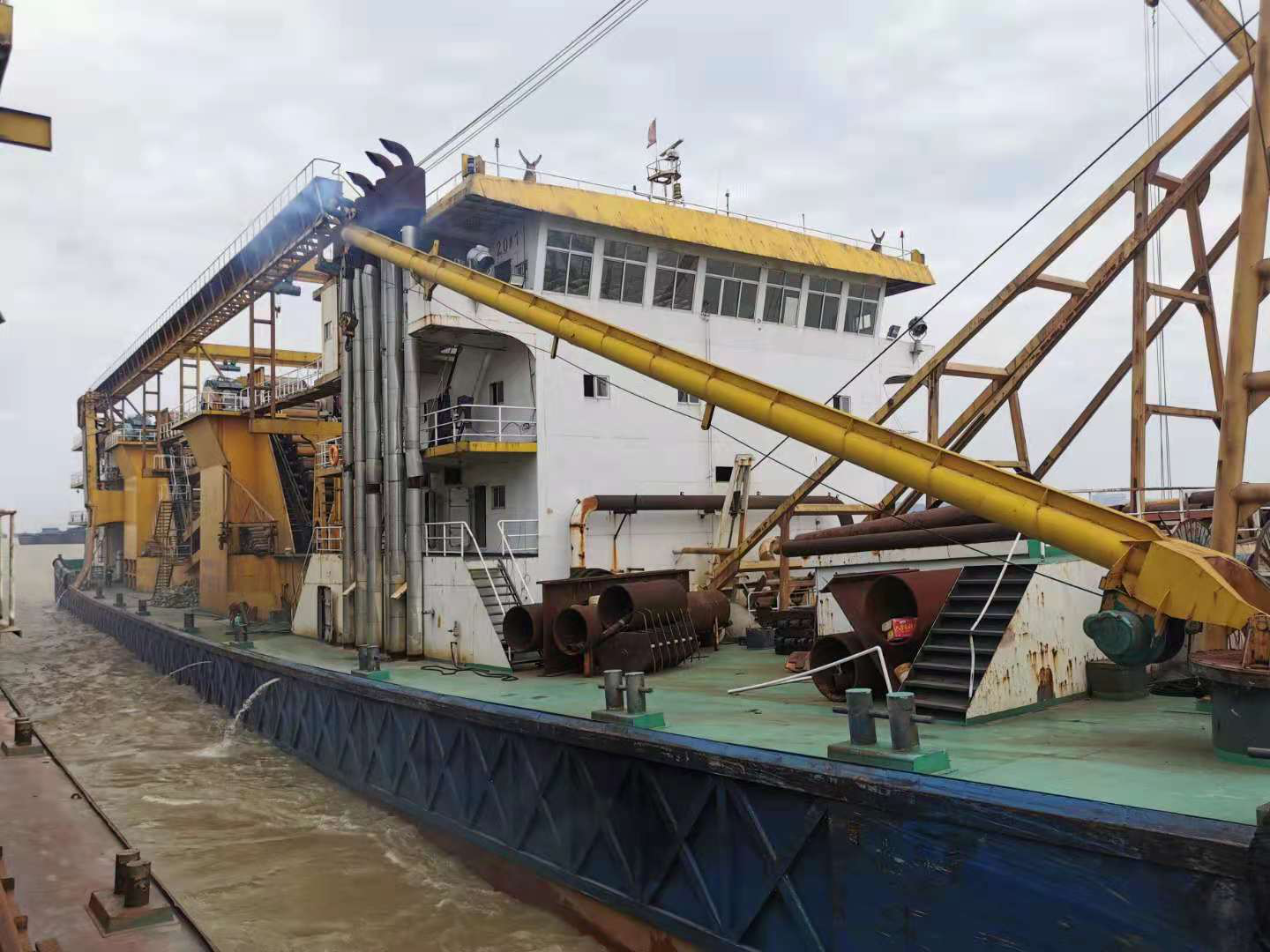 挖沙船的主要工作原理:該設(shè)備由船體、輸送系統(tǒng)、進(jìn)水系統(tǒng)、排空系統(tǒng)等組成,輸送系統(tǒng)包括動力、離合器、抽沙泵等,排空系統(tǒng)包括高壓水泵、抽真空裝置等。挖沙船利用水力的作用,將高壓水槍噴射出的水柱沖起的細(xì)沙、海沙等在水泵的作用下由管道輸送到目的地。