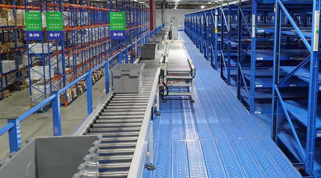 一般由鋼帶、皮帶、滾筒等組成滑道,使商品從主輸送裝置滑向集貨站臺,在那里由工作人員將該道口的所有商品集中后或是入庫儲存,或是組配裝車并進行配送作業(yè)。